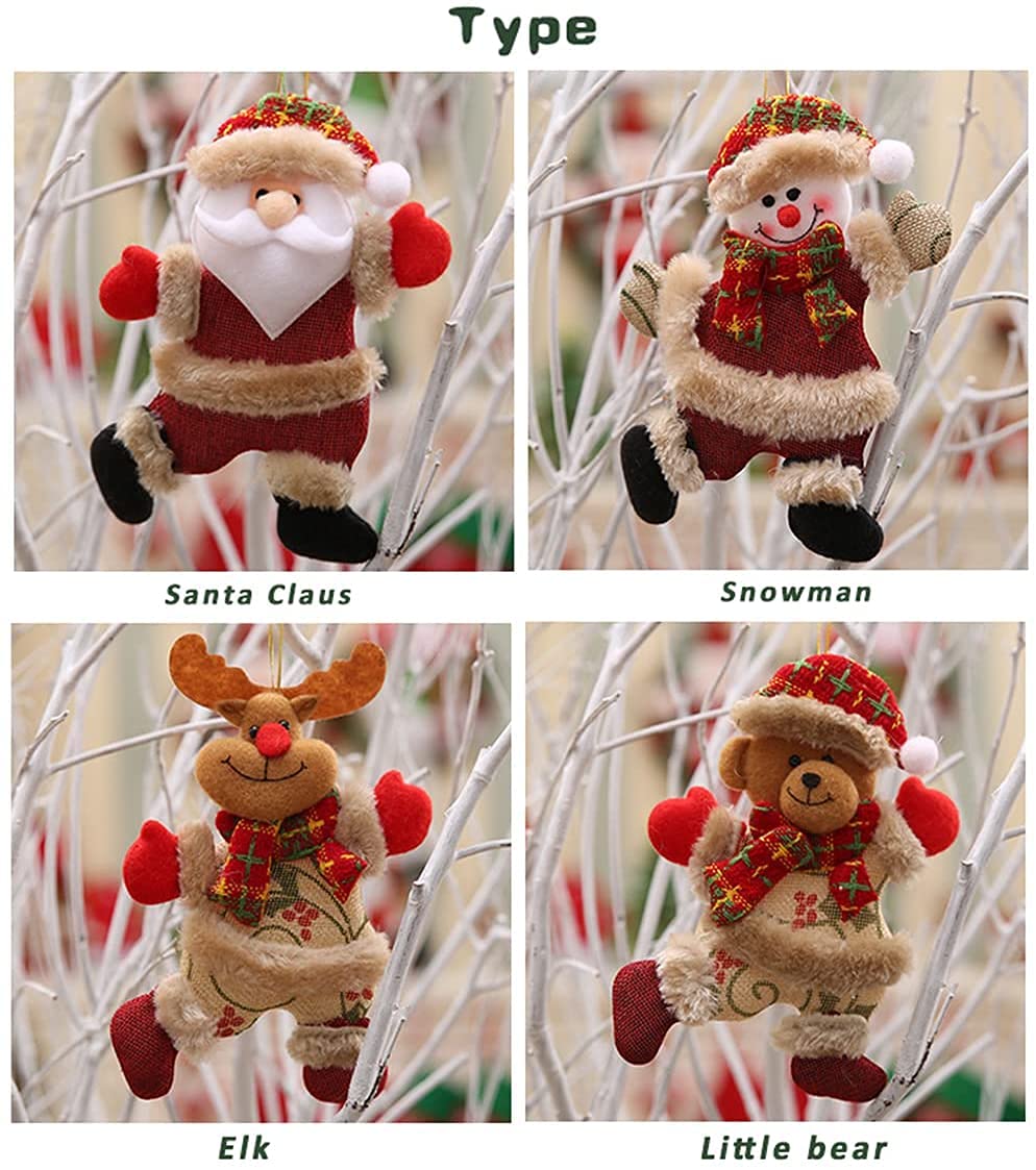 SalLady 4PCS Christmas Ornaments Plush Hanging Ornaments Xmas Decoration Doll Toy Santa Snowman Reindeer Ornaments for Xmas Home Decorations Holiday Decor